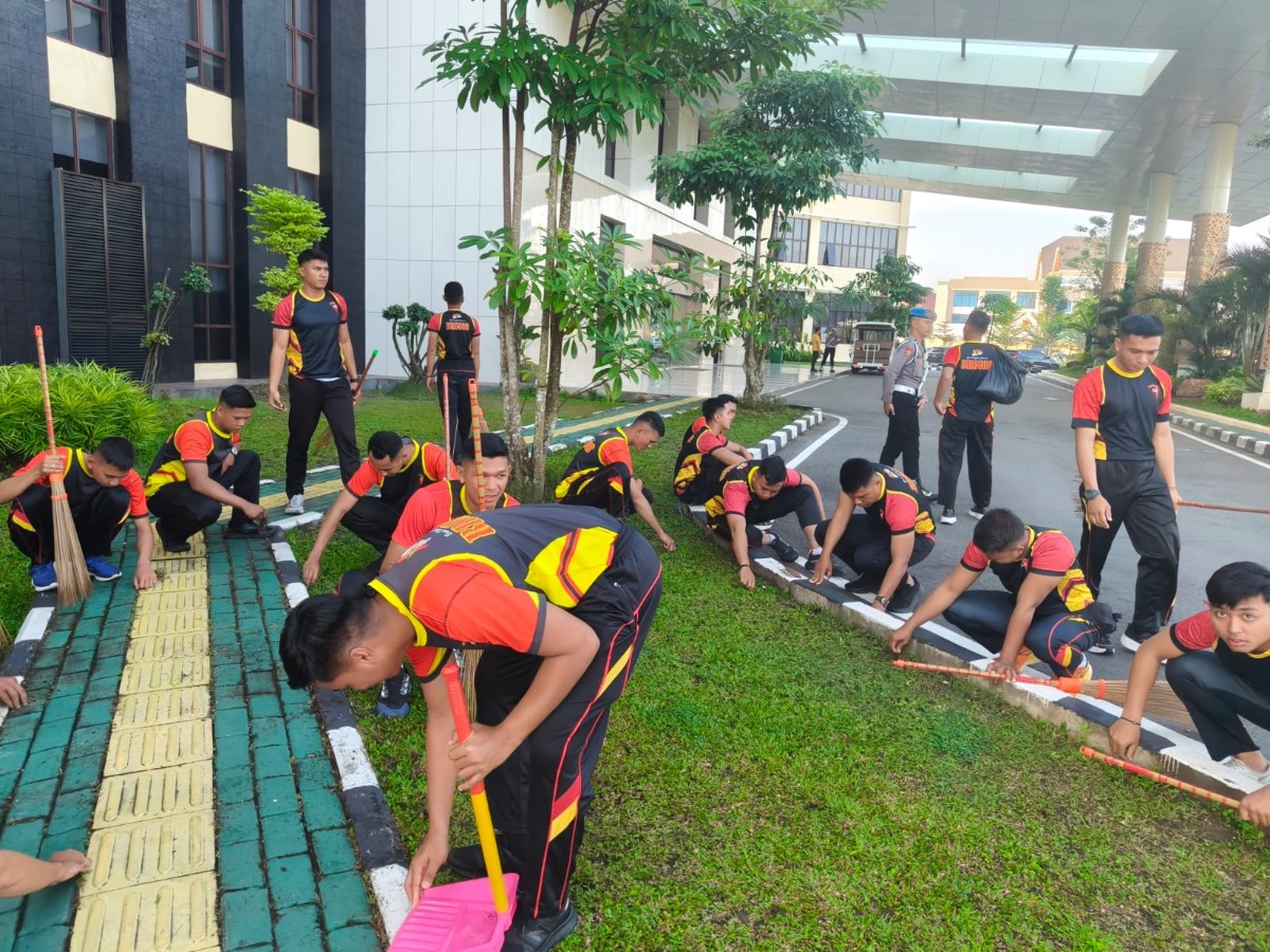 Foto: Aksi para personil Polda Kalsel bersihkan lingkungan kerja