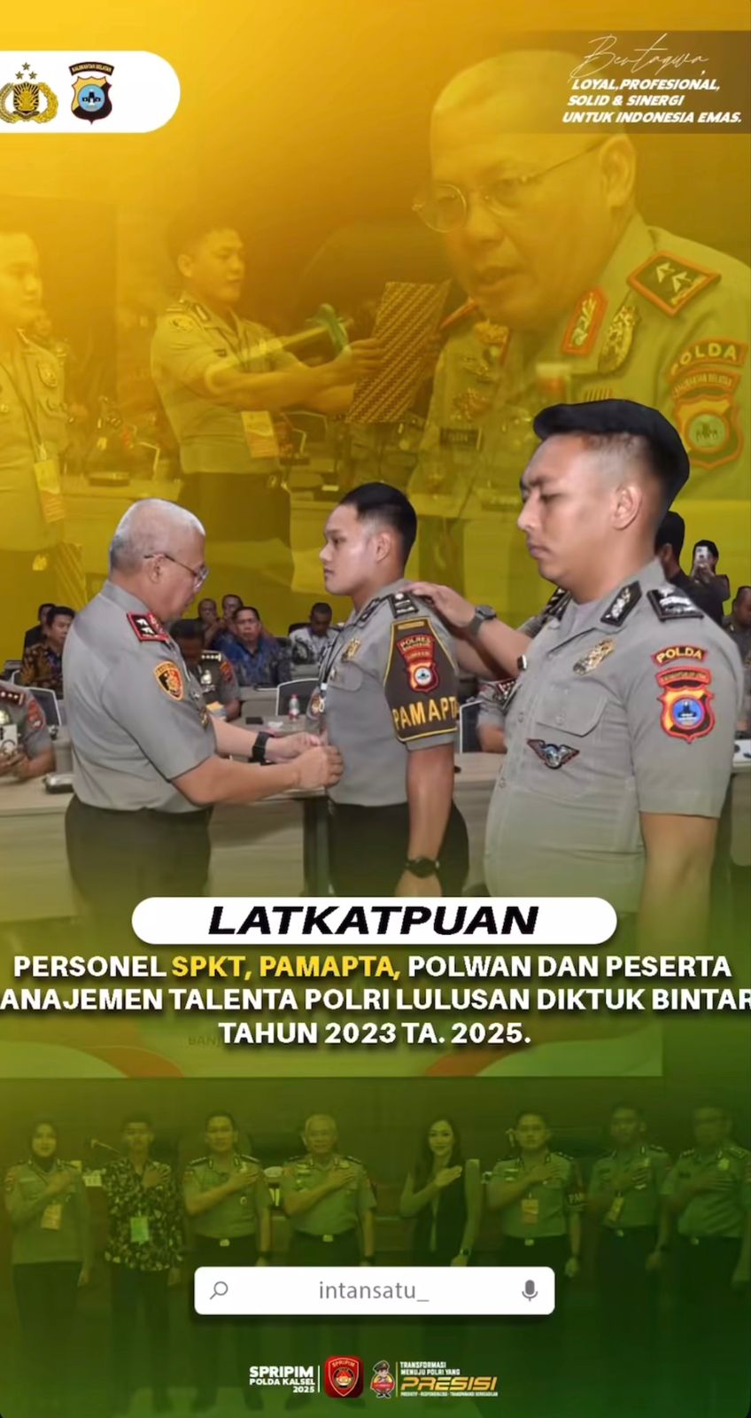 Dengan semangat loyalitas dan profesionalisme, Polri terus berkomitmen mendukung terwujudnya Indonesia Emas melalui kehadiran personel yang presisi, humanis, dan berkarakter.