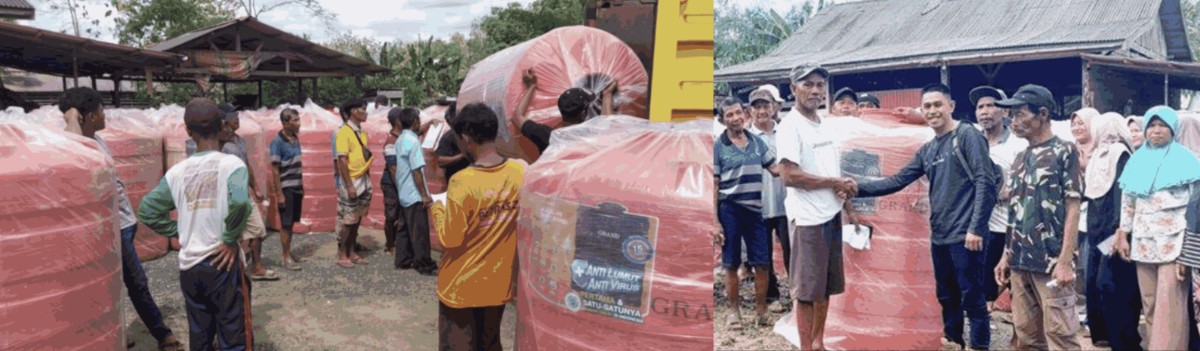 Melihat hal tersebut, Anggota DPRD Kotabaru Robbiansyah berkerjasama dengan Polda Kalimantan Selatan melalui Direktorat Intelkam menyalurkan 20 tandon air berukuran 1.200 liter di lima desa.