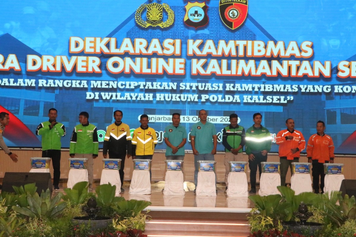 BANJARBARU– Kepolisian Daerah Kalimantan Selatan (Polda Kalsel) menggelar deklarasi bersama komunitas ojek online (ojol) dalam upaya memperkuat peran masyarakat menjaga keamanan dan ketertiban wilayah. Kegiatan yang dipimpin langsung Kapolda Kalsel, Irjen Pol. Rosyanto Yudha, tersebut diikuti sekitar 500 pengemudi dari berbagai aplikasi transportasi daring.
