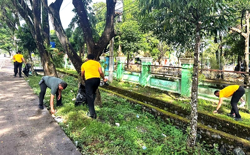 Halaman masjid, tempat wudu, hingga ruang ibadah dibersihkan secara gotong royong. Tanpa memandang pangkat, seluruh personel bekerja bersama demi menciptakan lingkungan ibadah yang bersih dan nyaman.