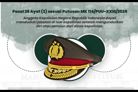 Anggota Majelis Hakim Mahkamah Konstitusi menegaskan bahwa anggota Polri hanya wajib mengundurkan diri atau pensiun jika menduduki jabatan di luar kepolisian yang tidak terkait dengan tugas dan fungsi Polri. Namun, jabatan lintas instansi yang masih memiliki sangkut paut dengan kepolisian tetap dapat diisi oleh anggota Polri aktif sesuai Putusan MK 114/PUU-XXIII/2025